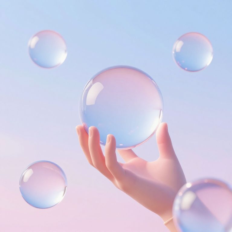 In a serene, pastel-hued world devoid of sky, transparent hand-blown orbs float gracefully, each capturing the essence of time with soft, ethereal reflections and a gentle hum upon touch, rendered in a high-definition 3D artistic style.