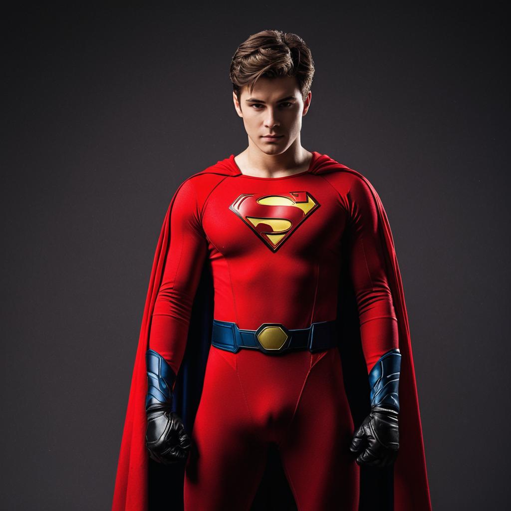 Incredibles adult costume,1boy, male focus, solo, realistic, looking at viewer, upper body, bodysuit, black hair, closed mouth, brown hair, red bodysuit, muscular