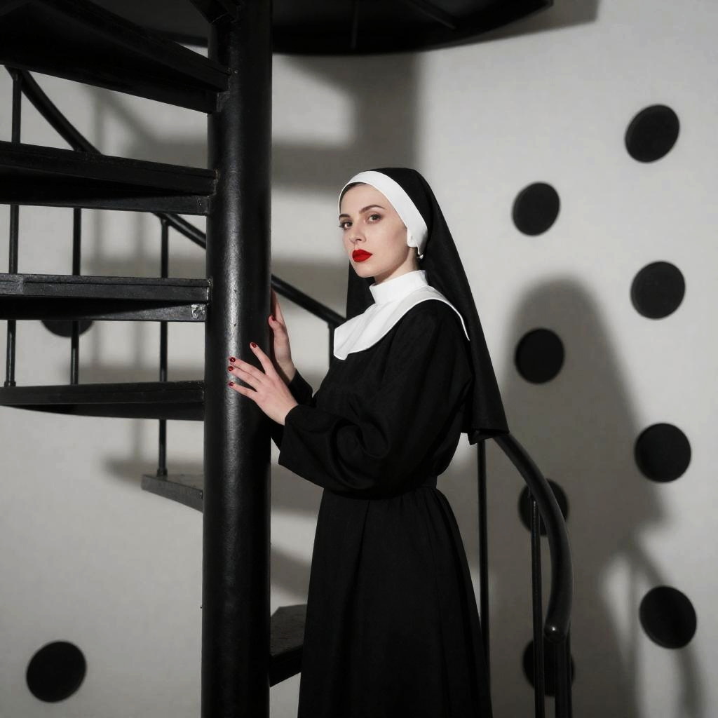 Mysterious Nun on Spiraling Stairs