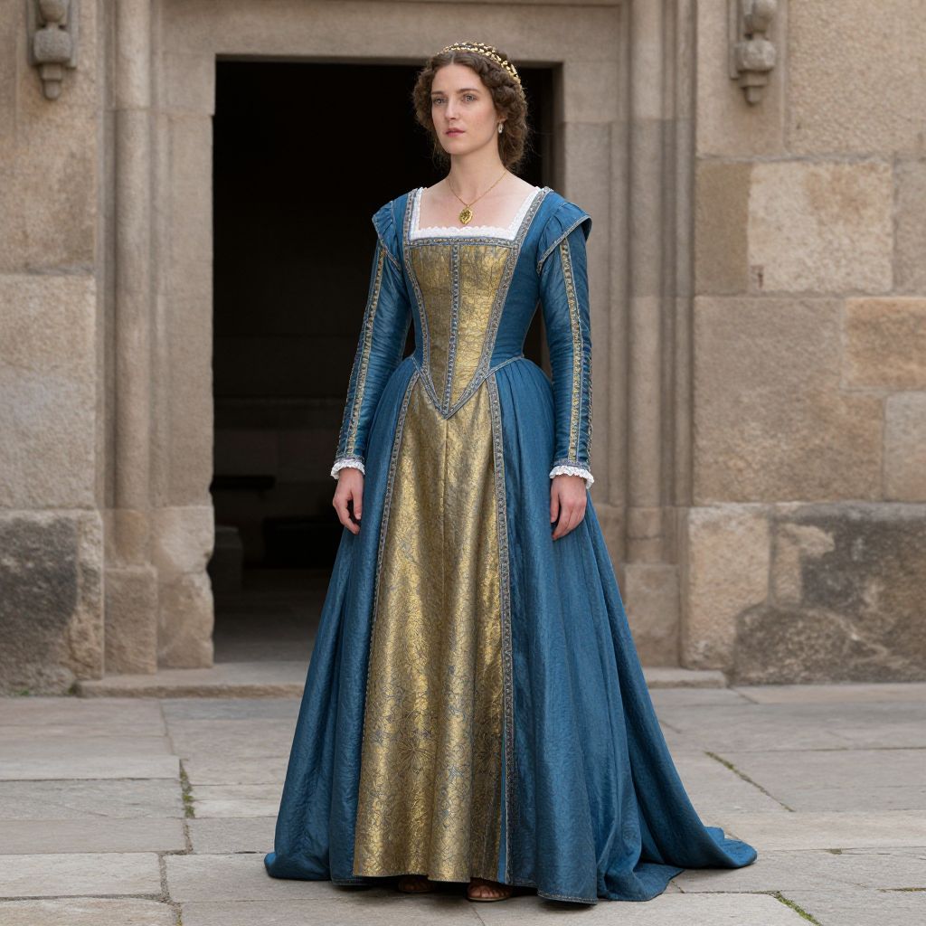 Medieval Woman in Blue and Gold Dress