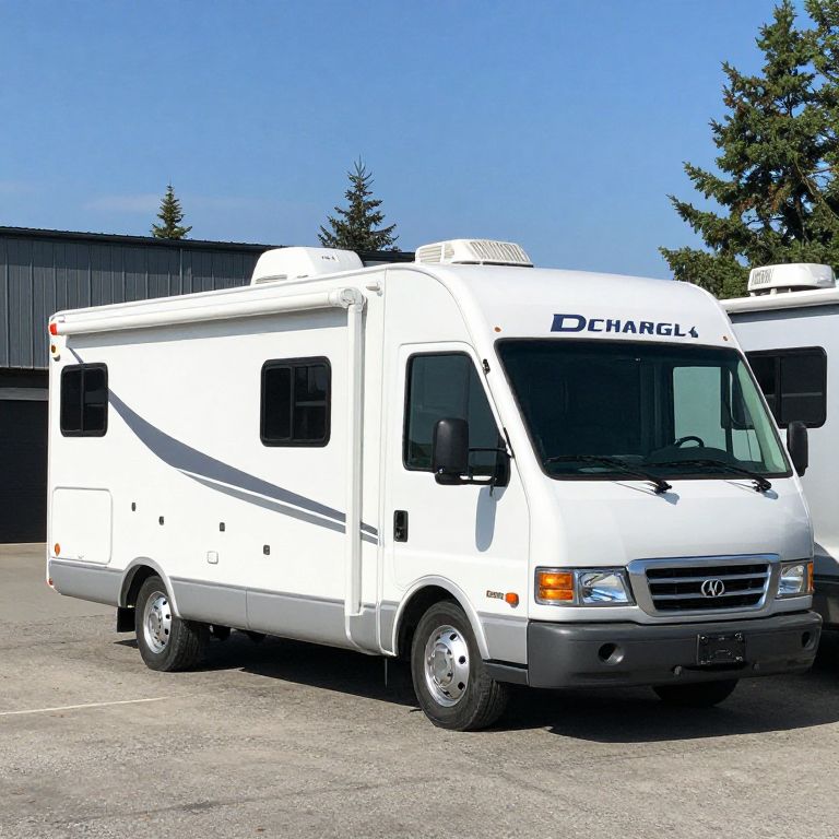 White Class A Motorhome RV Parked Outdoors