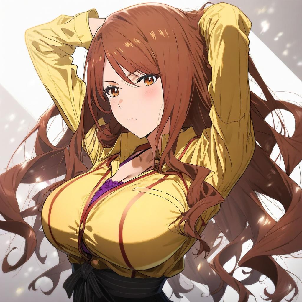 Mugino shizuri, toaru majutsu no index, 1girl, brown eyes, long hair, brown hair, large breasts, by artist kimura takahiro, leet