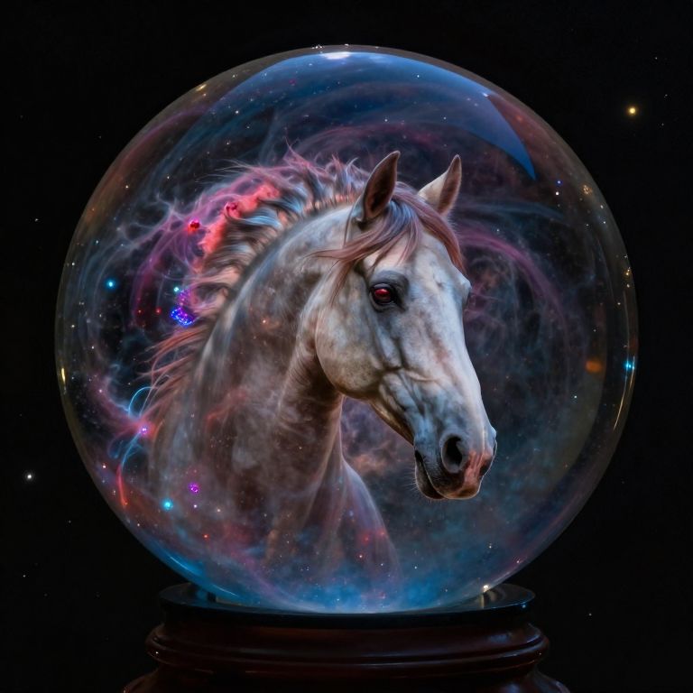 Professional the horsehead nebula inside a crystal ball, vibrant colors, night time, cinematic lighting, 32k,
