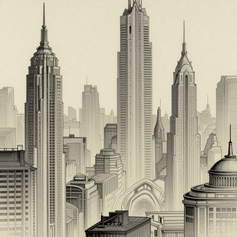 Futuristic Cityscape Ink Wash Art