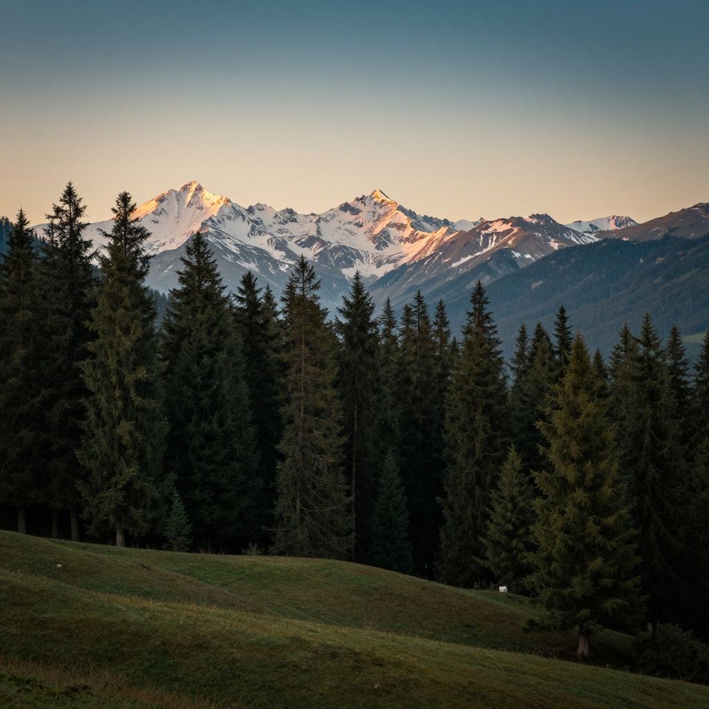 Scenic Pine Forest with Snowy Mountains