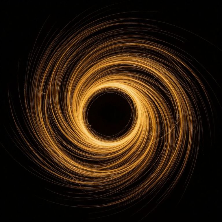 Digital art of a glowing, golden-orange spiral vortex against a black background, creating a cosmic, whirlpool effect.