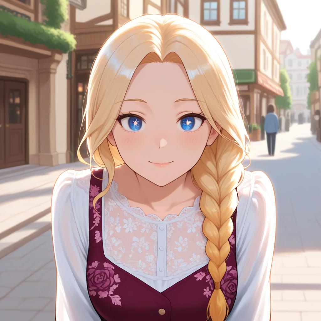 Realistic Portrait of Blonde Sisters in Victorian Town