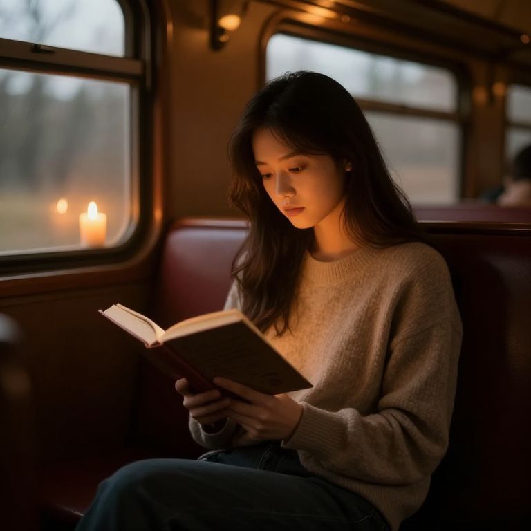 Koyuki (kotatsu358) sitting on a cozy wooden kotatsu in a soft winter room, warm orange lights glowing, reading a manga with a cup of hot tea, detailed realism, cinematic lighting, Japanese home interior, warm atmosphere, focused expression, gentle ambient glow.