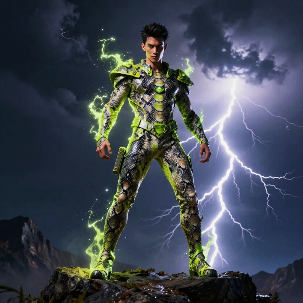 Wolf-Inspired Warrior with Red Energy in Desert Night