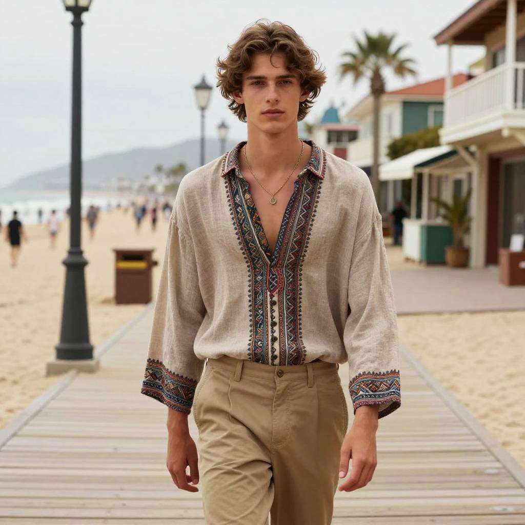 Layered Undercut hairstyle on young man, wearing streetwear hoodie and cargo pants, in graffiti wall, captured in fashion editorial style with harsh midday sun.