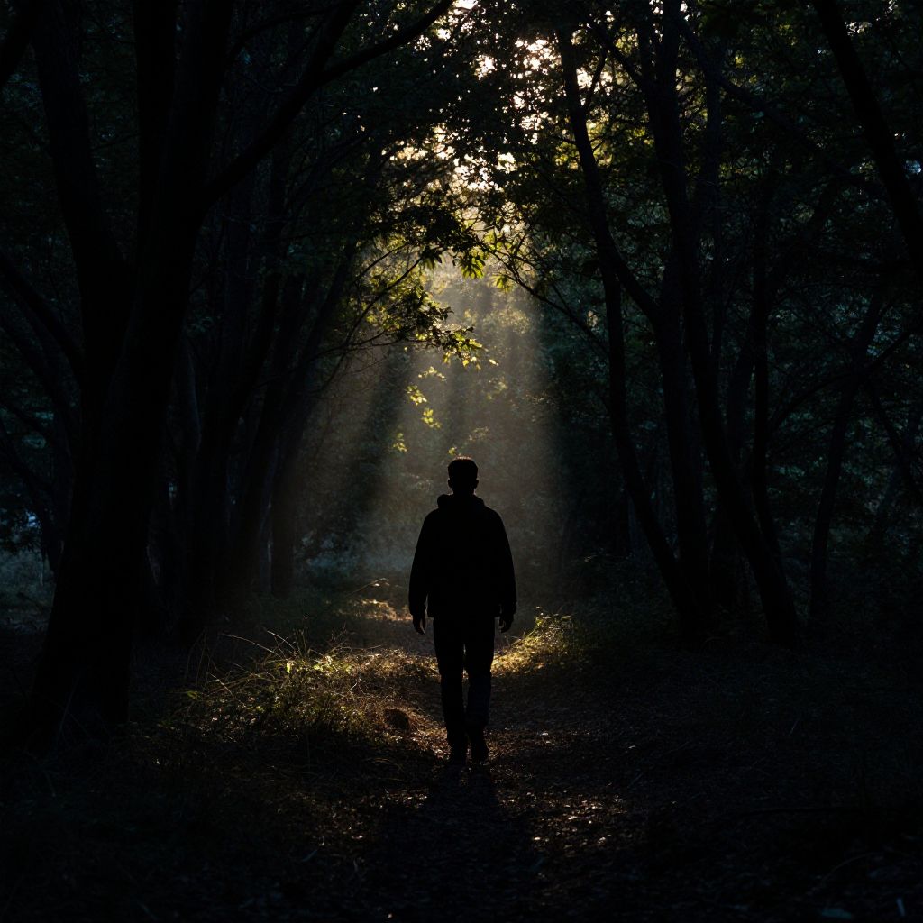Silhouette Man in Shadowy Forest