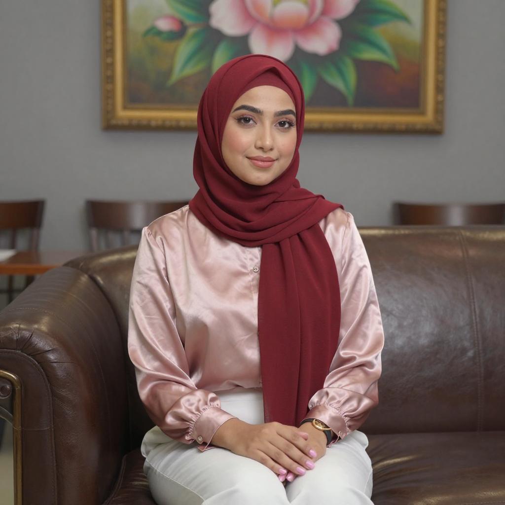 Young Woman in Mauve Hijab Sitting
