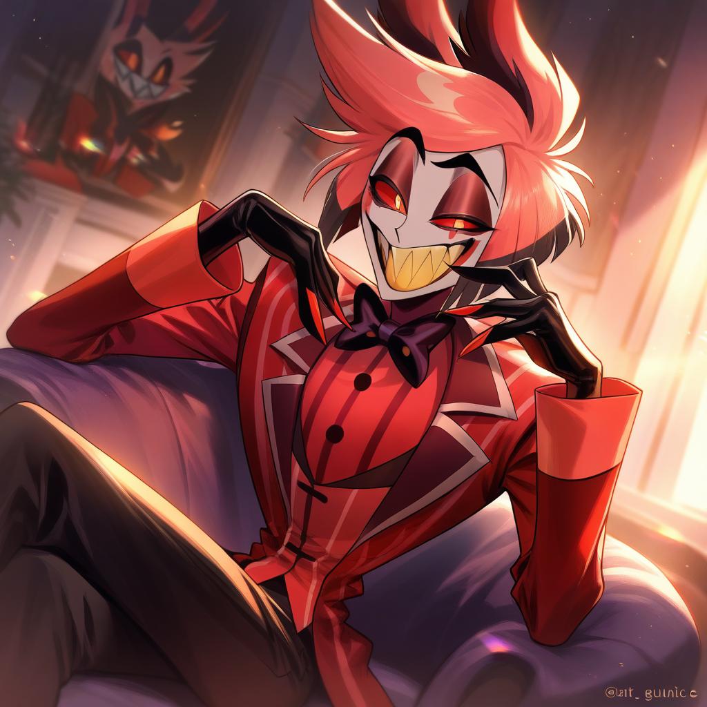 Illustration of Alastor (hazbin hotel), hazbin hotel in the style of Samidare (hoshi)