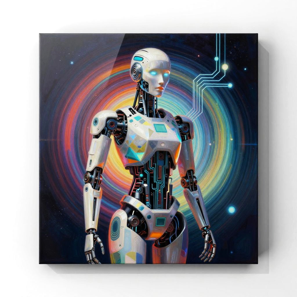 Cyberpunk AI Robot Painting Art