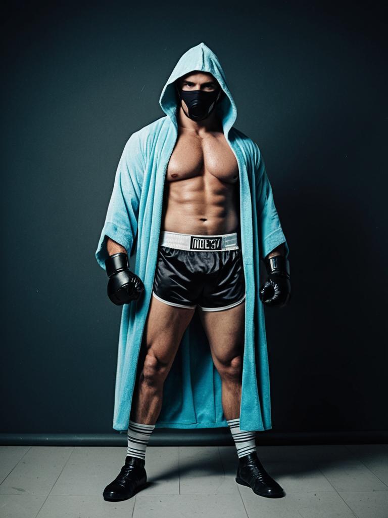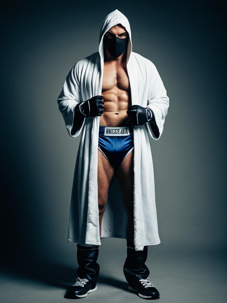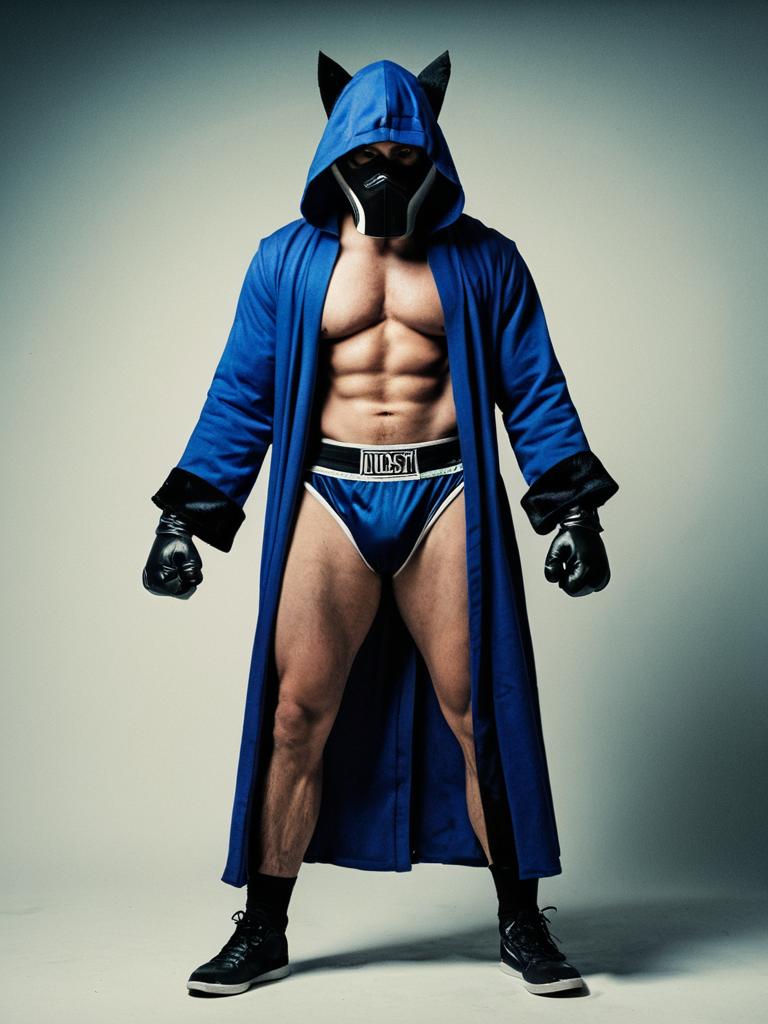 Man in Boxer Costume, full-body cosplay photo with gloves and robe