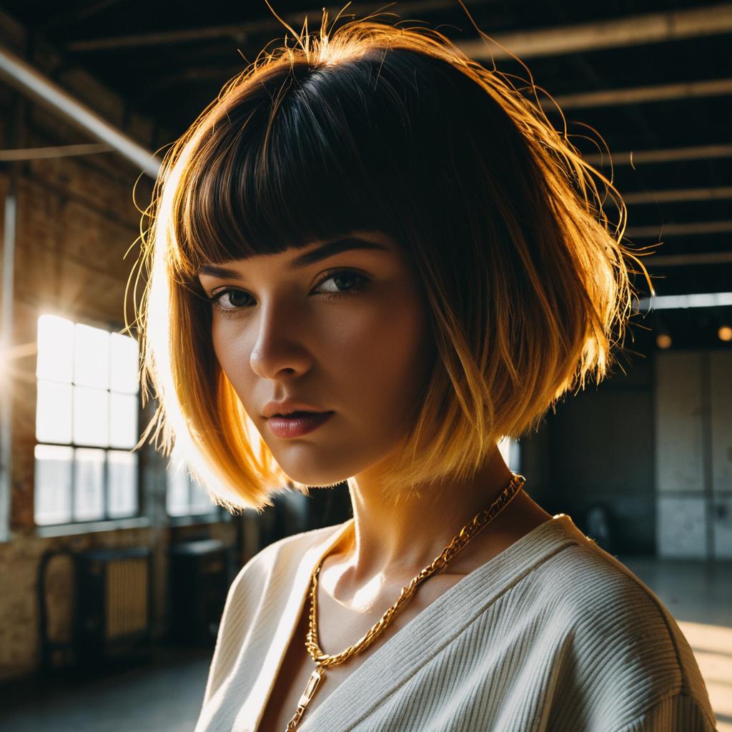Young Woman with Disconnected Cut Hairstyle on Urban Street