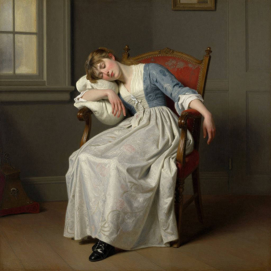 Laurie & Whittle, A Nap after Dinner, 1796, A young woman dozing in a chair…