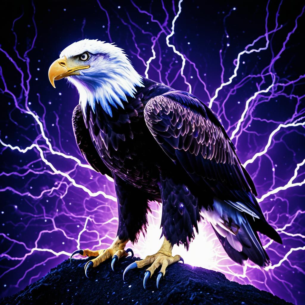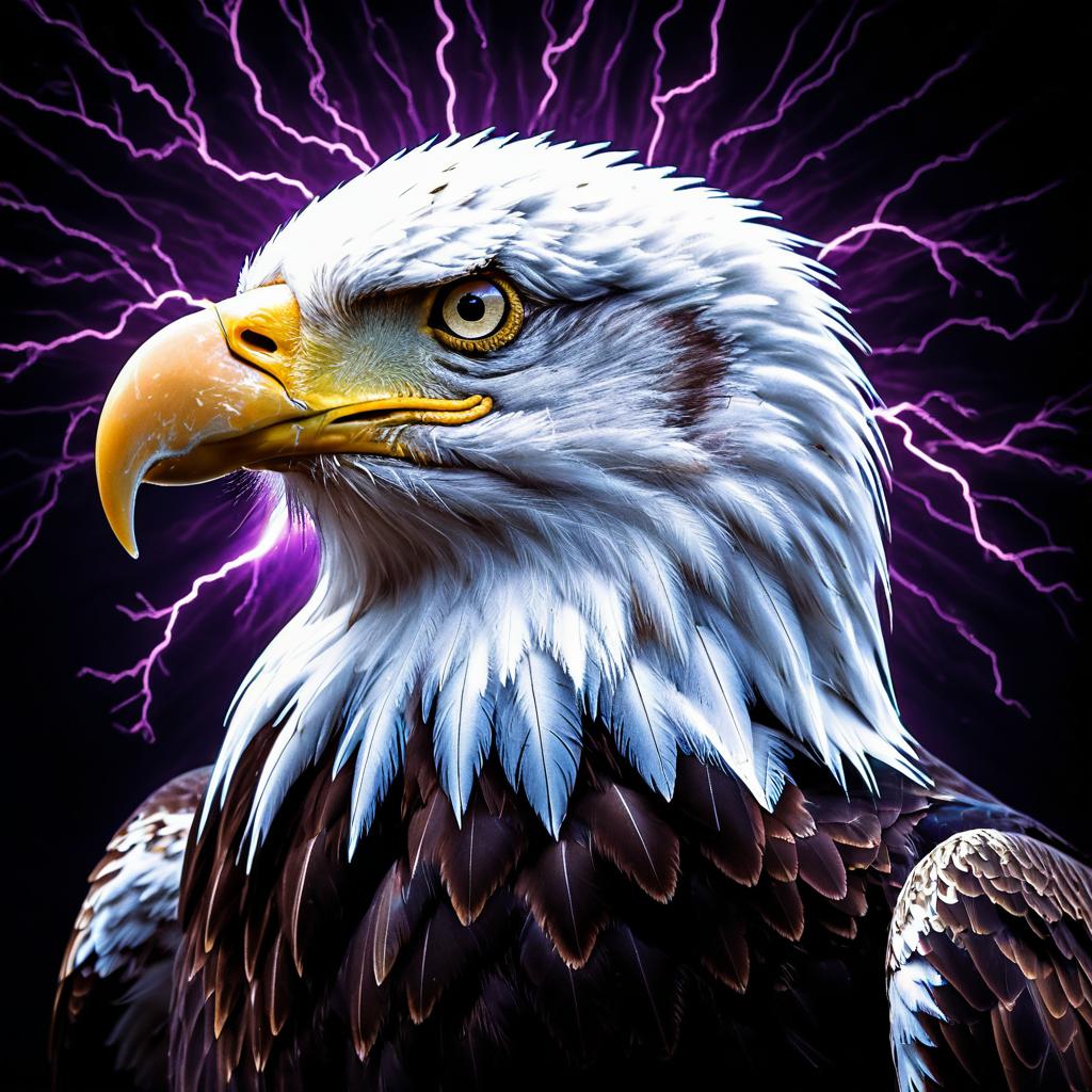 Radiant Bald Eagle with Electric Violet Lightning