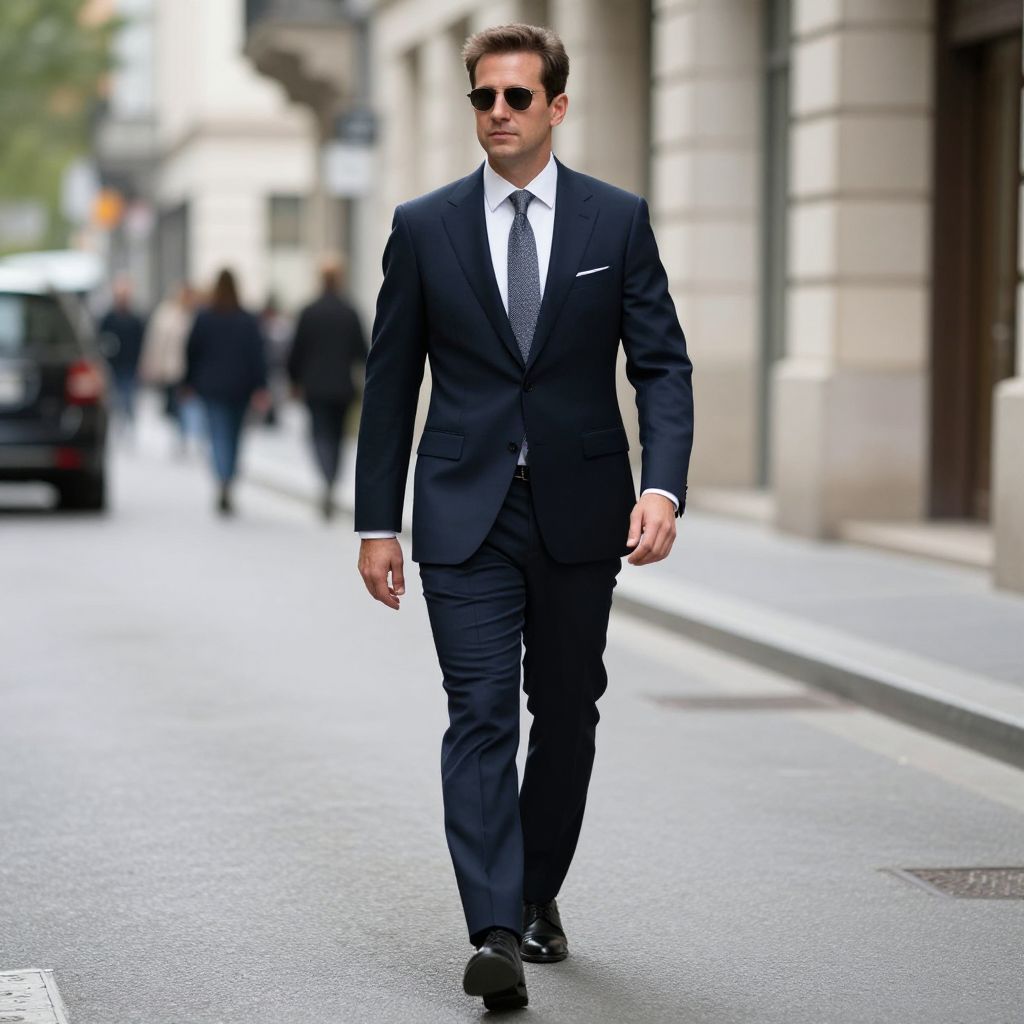 Leon Professional Costume, dressed in a suit and tie walking down a street