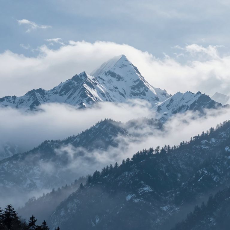 Eternal serenity whispers through the icy peaks, where time stands still amidst the ethereal dance of clouds and the quiet hum of ancient winds.