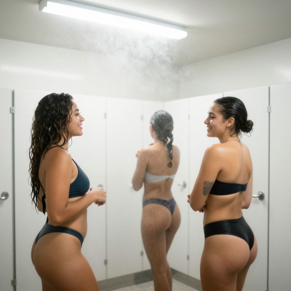 Modern Gym Locker Room Shower Scene