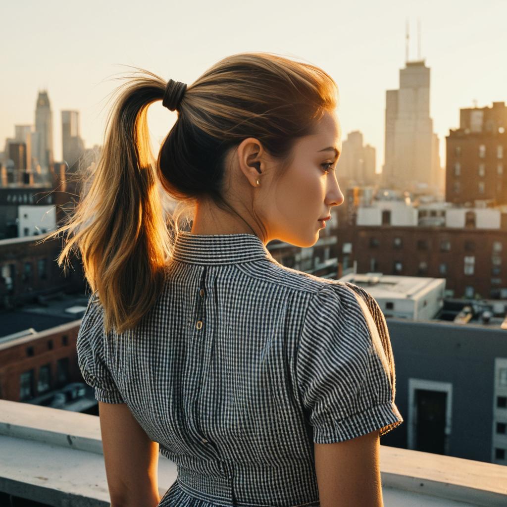 Fashion Model with Low Ponytail on Rooftop