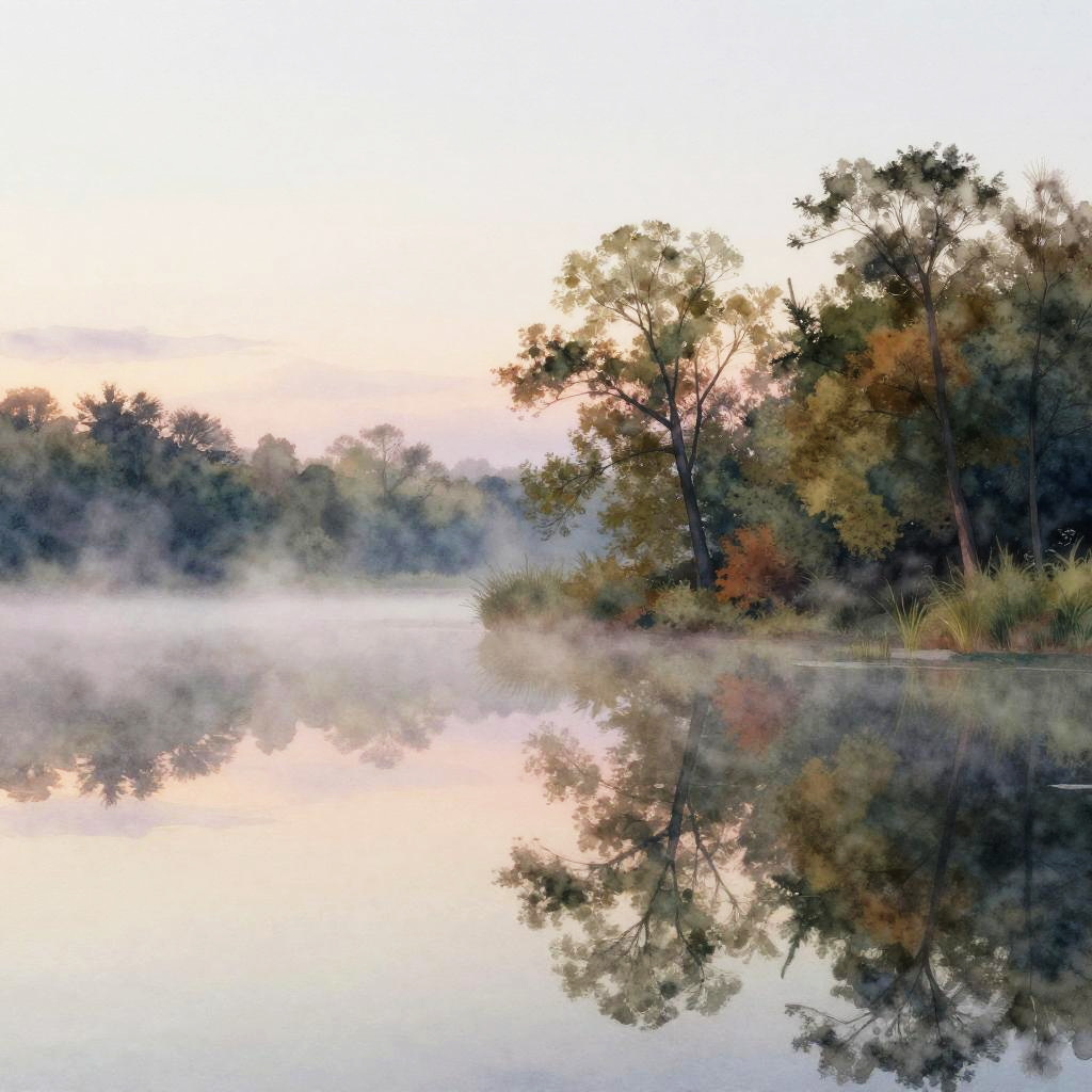 Serene Lakeside Dawn Watercolor
