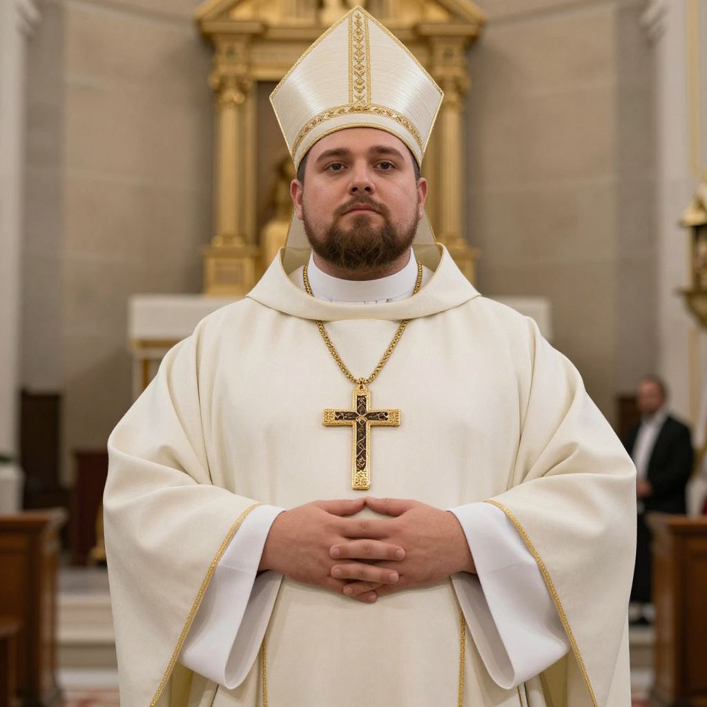 Plus Size Pious Priest in Church