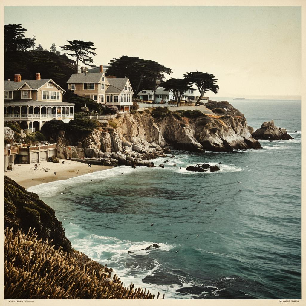 A serene lighthouse overlooking the ocean on a rocky coastline, drawn in vintage postcard style with muted tones, featuring soft lighting and a nostalgic mood, nostalgic and artistic