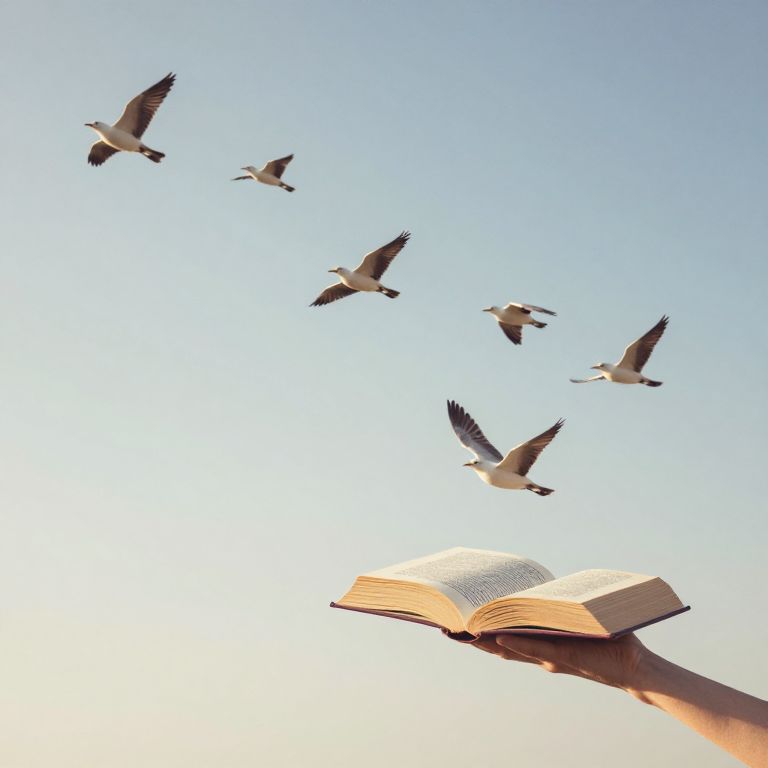 Books transcend their silent confines as sentient birds take flight, carrying whispers of wisdom and poetry into the boundless sky, symbolizing the liberation of knowledge and the eternal quest for freedom.
