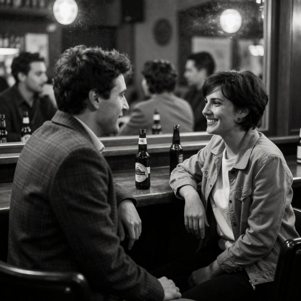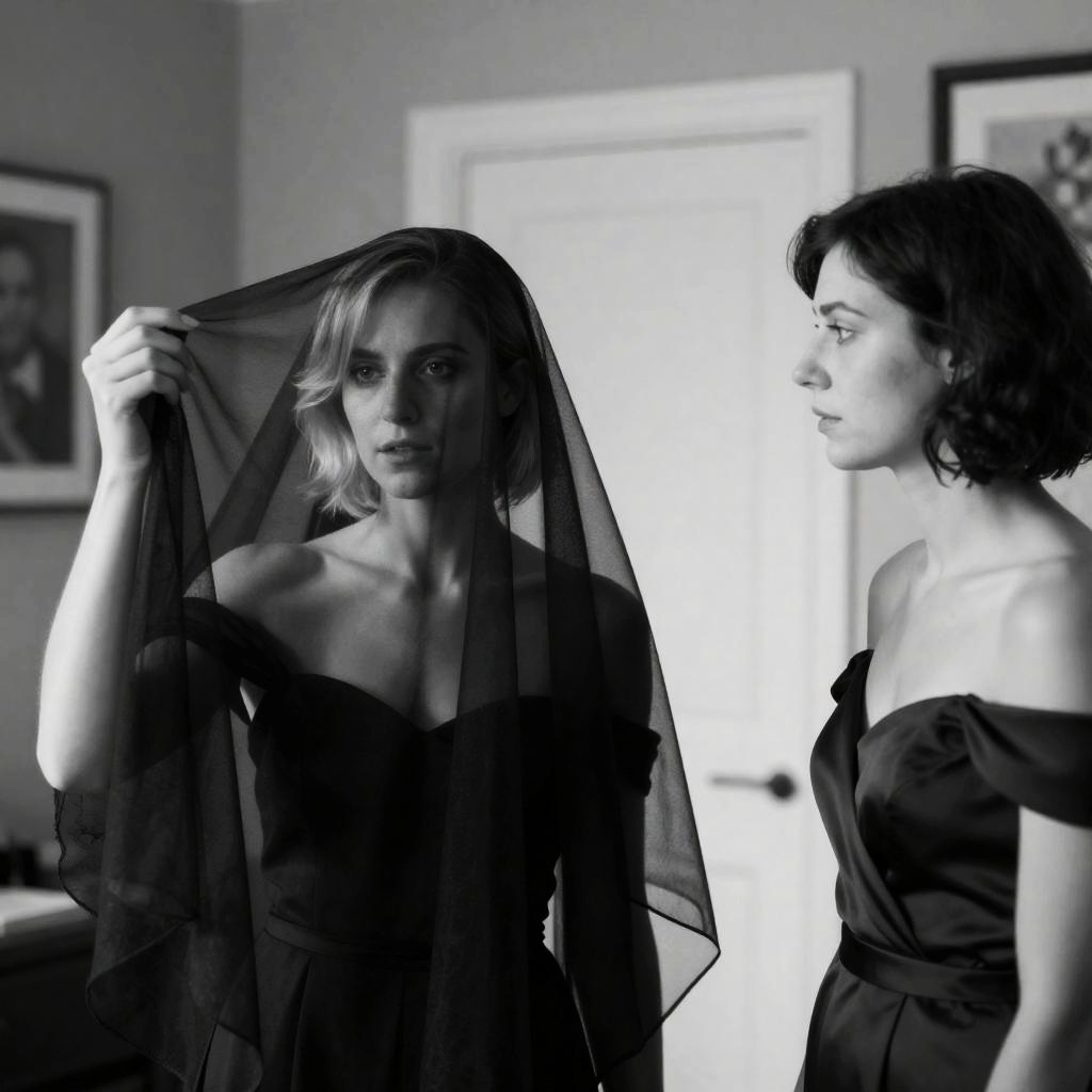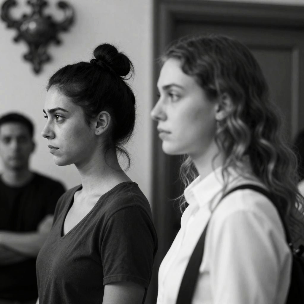 Black and White Portrait of Two Women Sharing Intense Moment