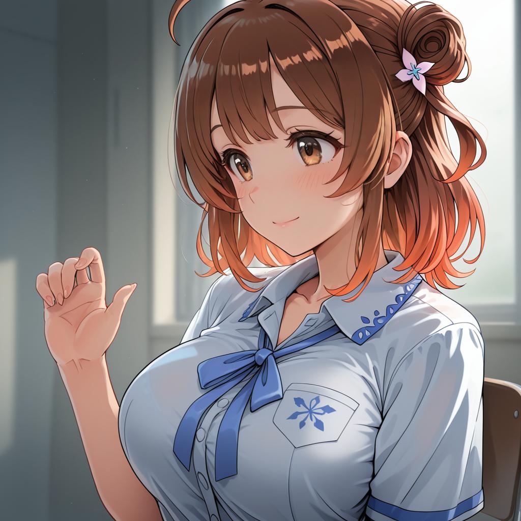 Aoba tsugumi, kannagi, 1girl, red eyes, short hair, red hair, brown hair, school uniform, school uniform, by artist opossumachine, illustrious