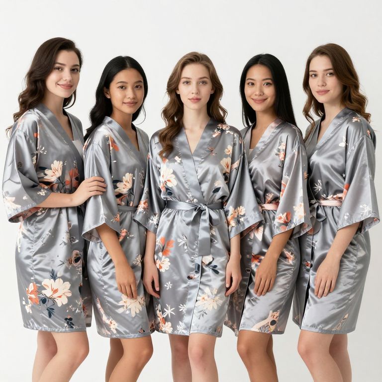 Elegant Gray Floral Bridesmaid Robe