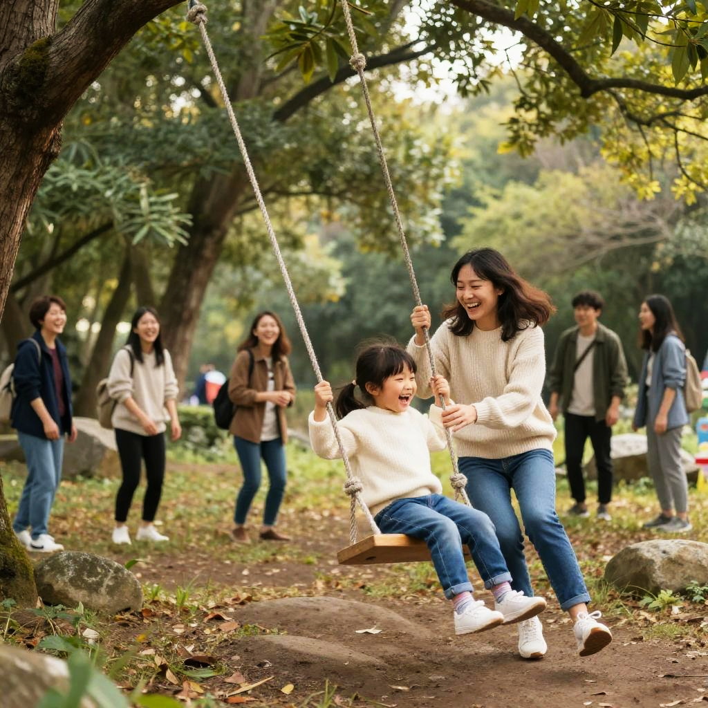 Six Friends Relaxing in Sunlit Park