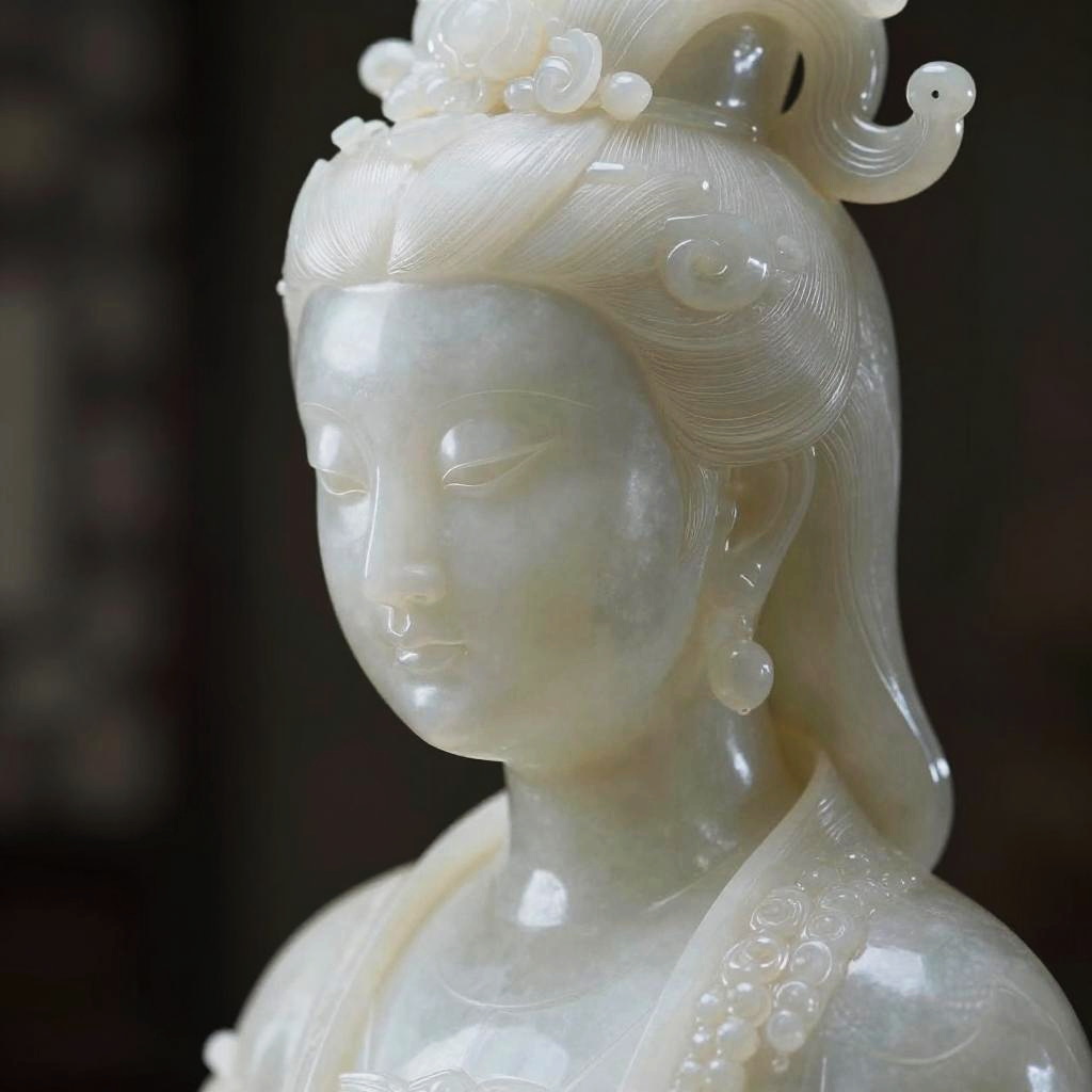 Jade Sculpture├п┬╝┬Мjade, realistic├п┬╝┬М1 girl, hair ornament, close up shot, pure white skin, cinematic light