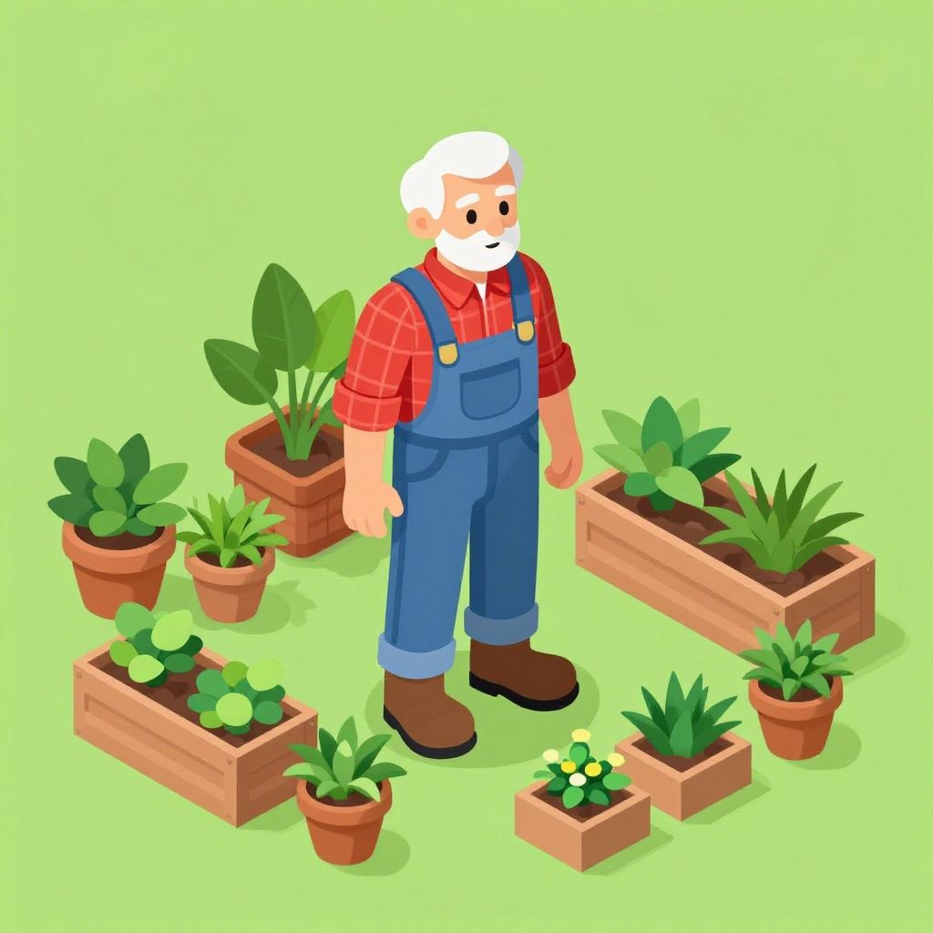 Isometric 3D Elderly Gardener Illustration