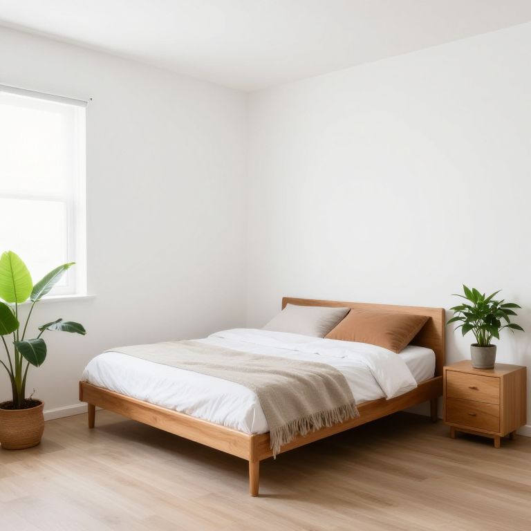 Kawaii Influencers small square room with white walls, bed in the cornerReal life 8K ultra-realistic, photorealistic, HD 8K, mid-century look wide angle shot, plants,