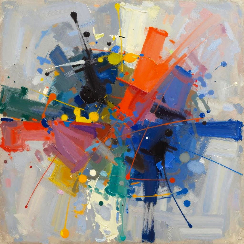 Generate art illustrating an abstract expressionist composition, vibrant splashes of paint and dynamic brush strokes conveying powerful emotions, with a bold color palette and textured layers that invite deep visual exploration.