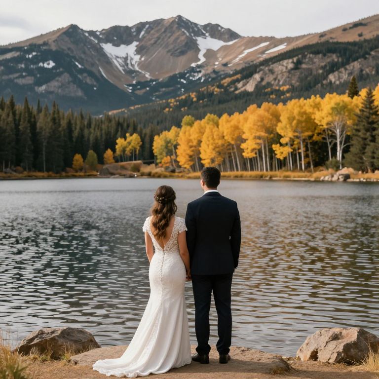 Couple looking out at grand lake colorado during their fall colorado elopement