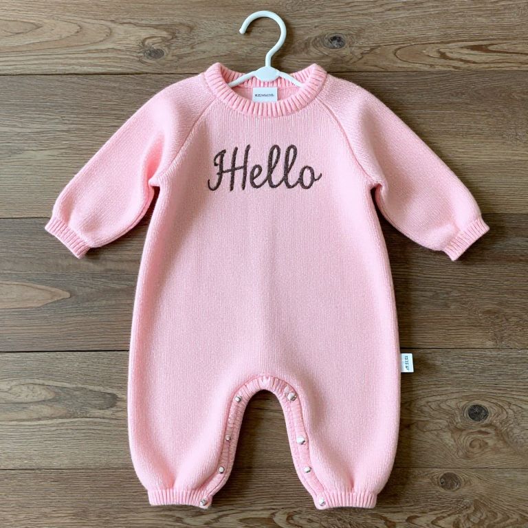 \"Baby Girl's Knit Longall - Cozy & Comfy Pink \"\"Hello\"\" [product_tags] - Carriage Boutique\