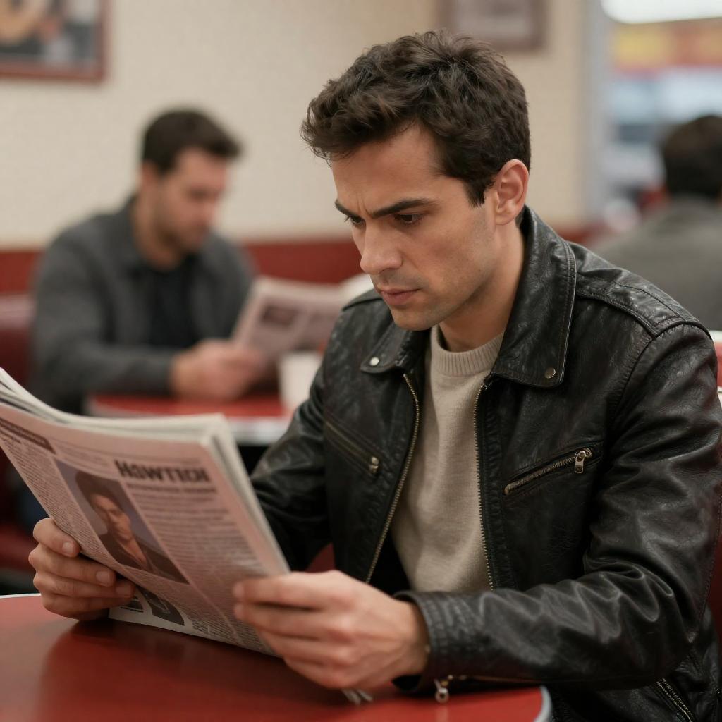 Photograph of a startled man with light skin, brown hair, wearing a beige cap and sleeveless blue vest, leaning forward. He holds a green string with two yellow sacks. Background includes green foliage and blue plastic crates.