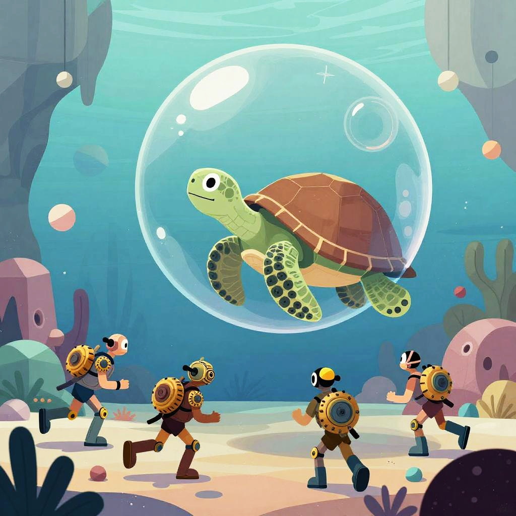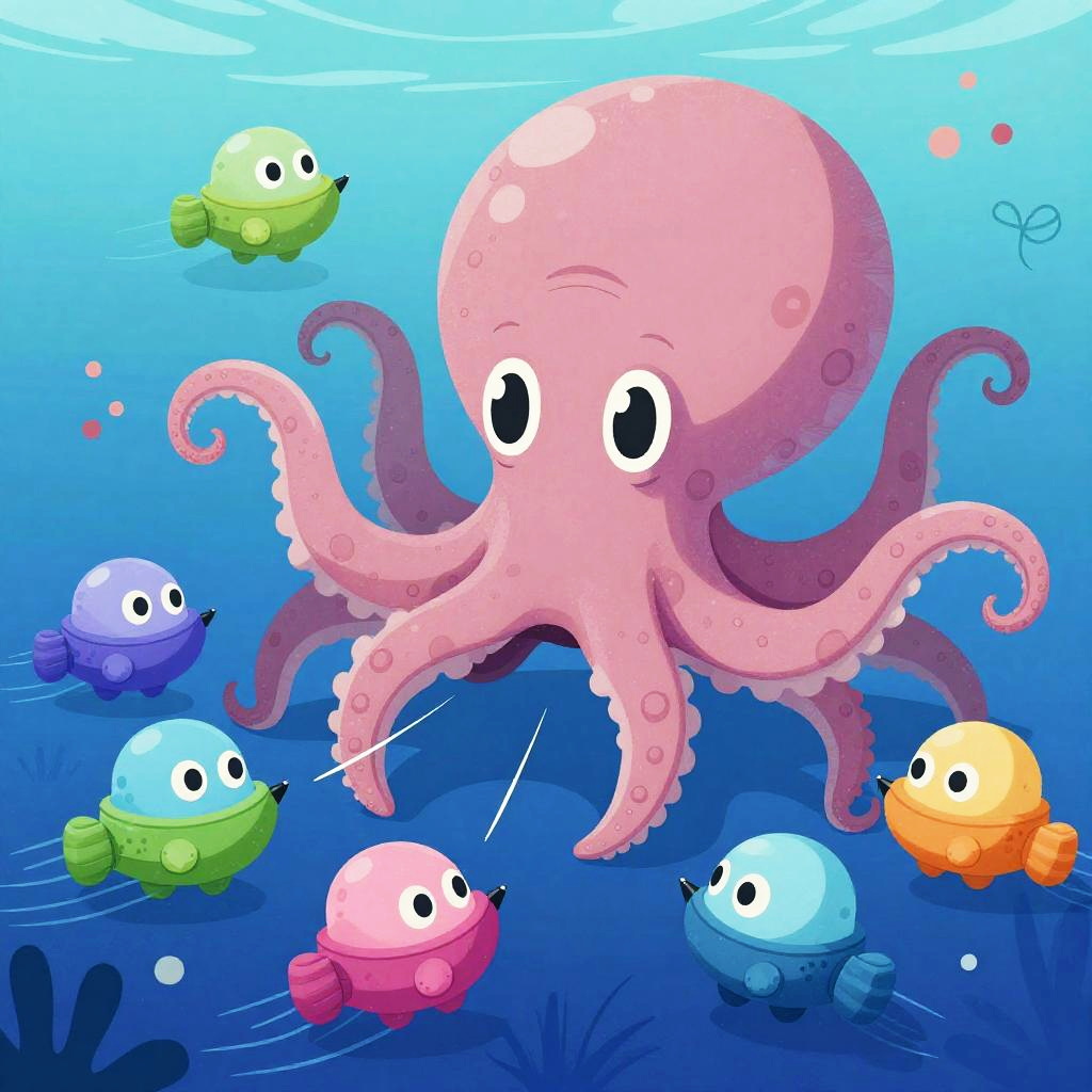Fantasy art of a group of marine knights battling a giant playful sea serpent, pastel colors, bold shapes, deep sea trench setting, whimsical tone, cartoonish and modern art style