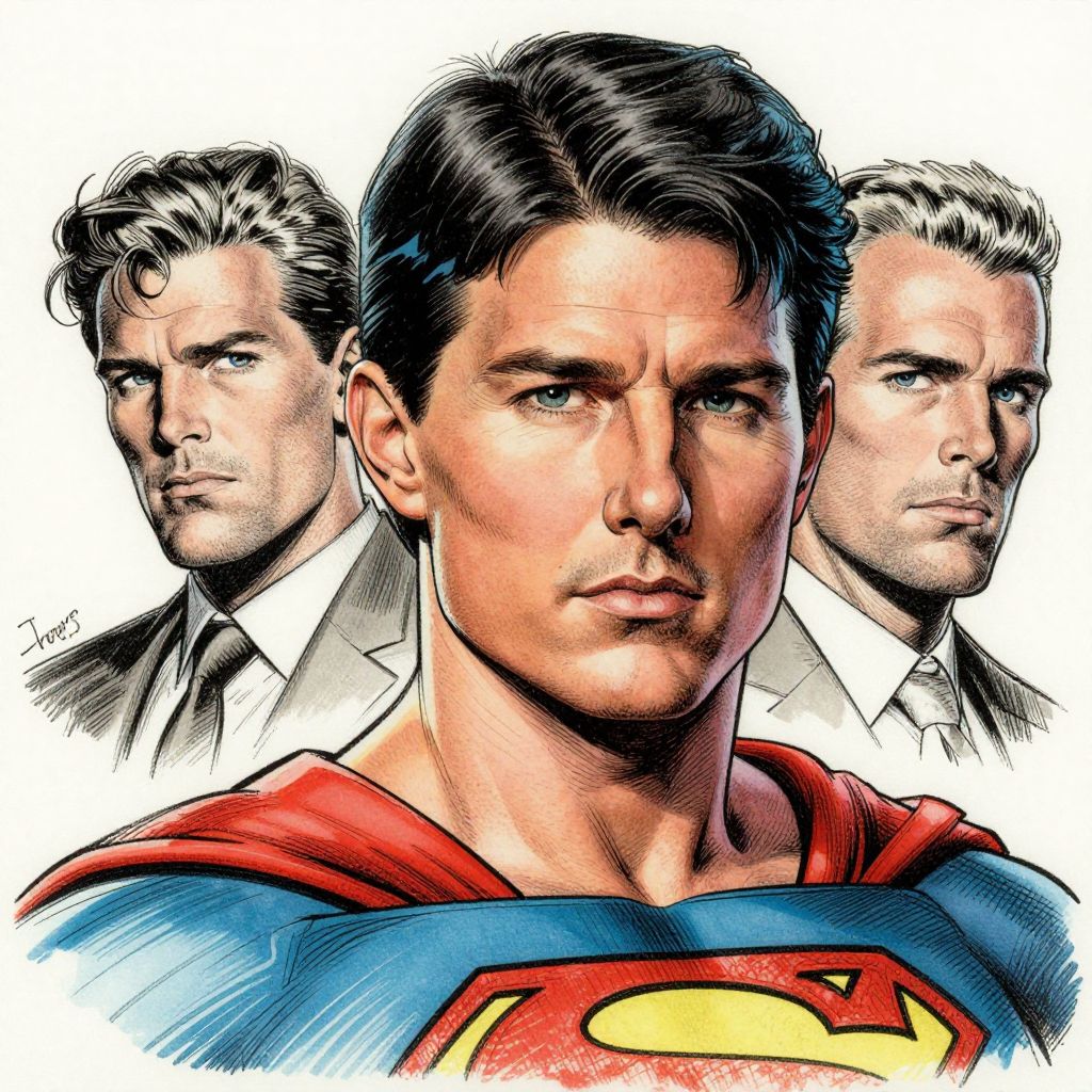 Tom cruise!!! jim lee!!! flat ink sketch by jim lee face close up headshot superman costume in the style of jim lee, x - men superhero comic book character by jim lee