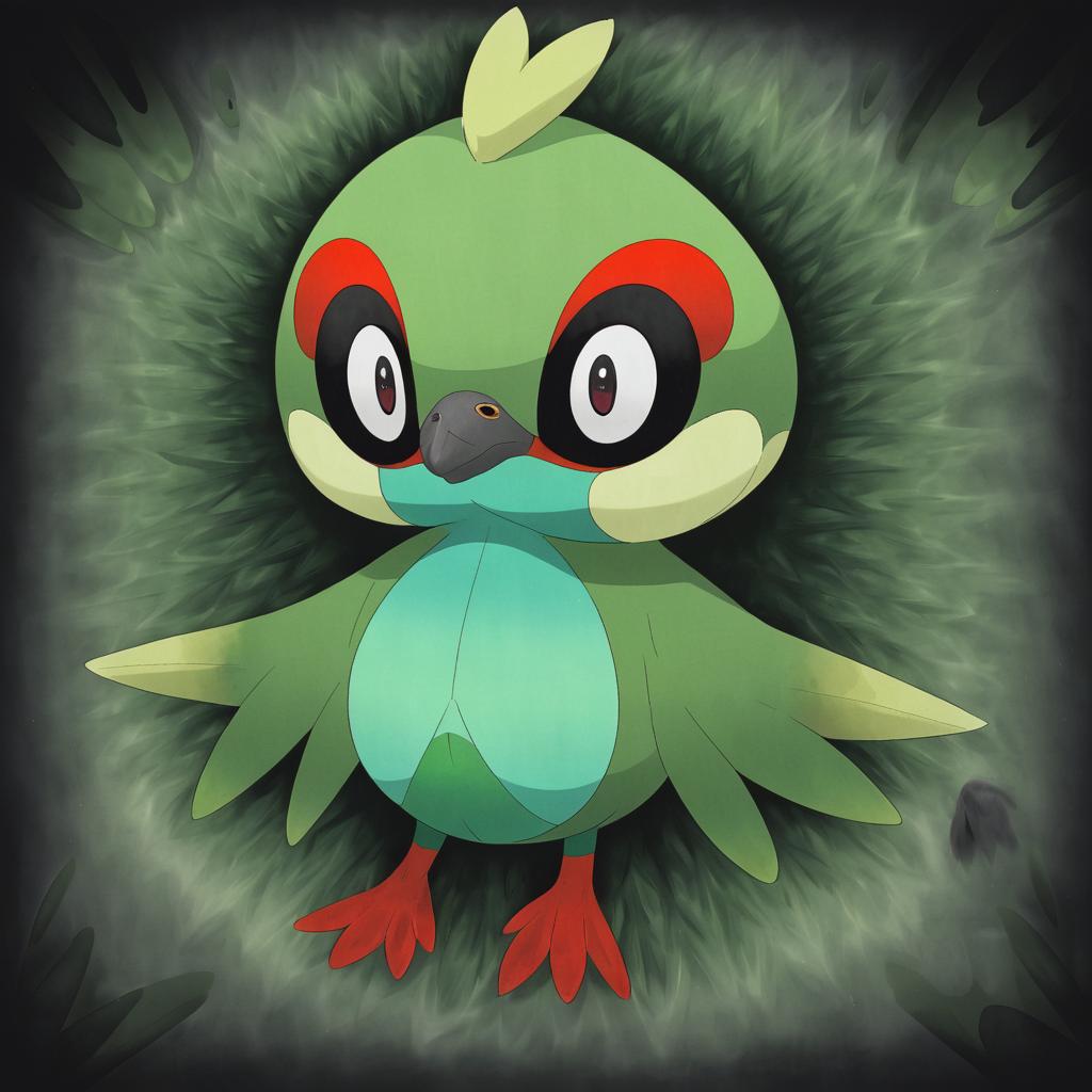 Illustration of Natu, pokemon in the style of Mac star