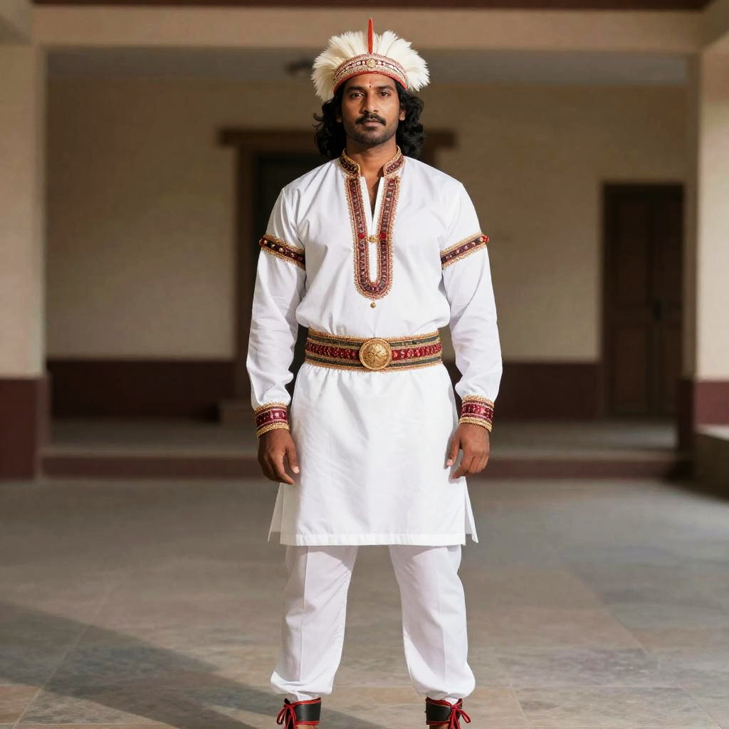 Indian Native Costume, a man in a traditional indian outfit standing in a hall