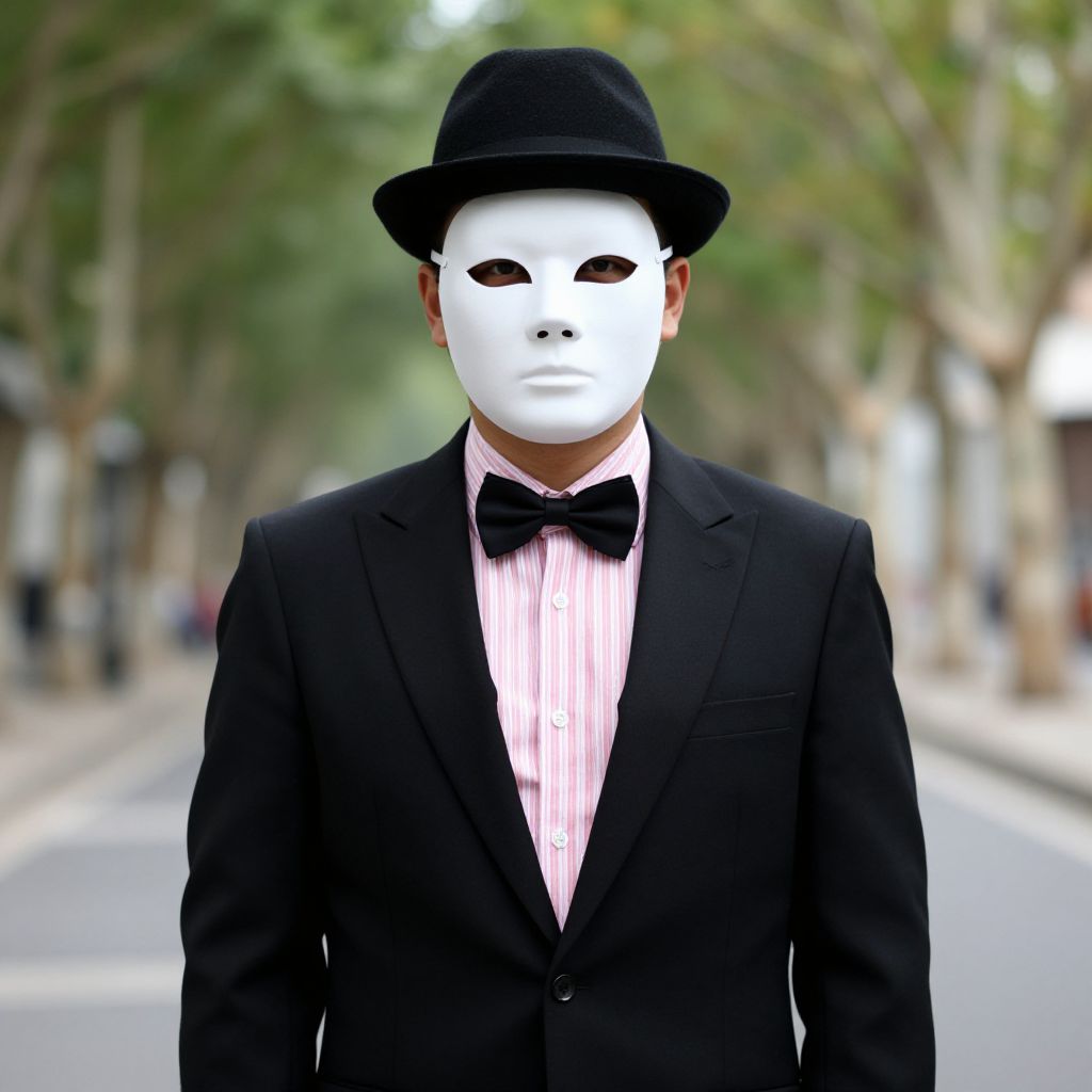 Man in Black Suit with Mask
