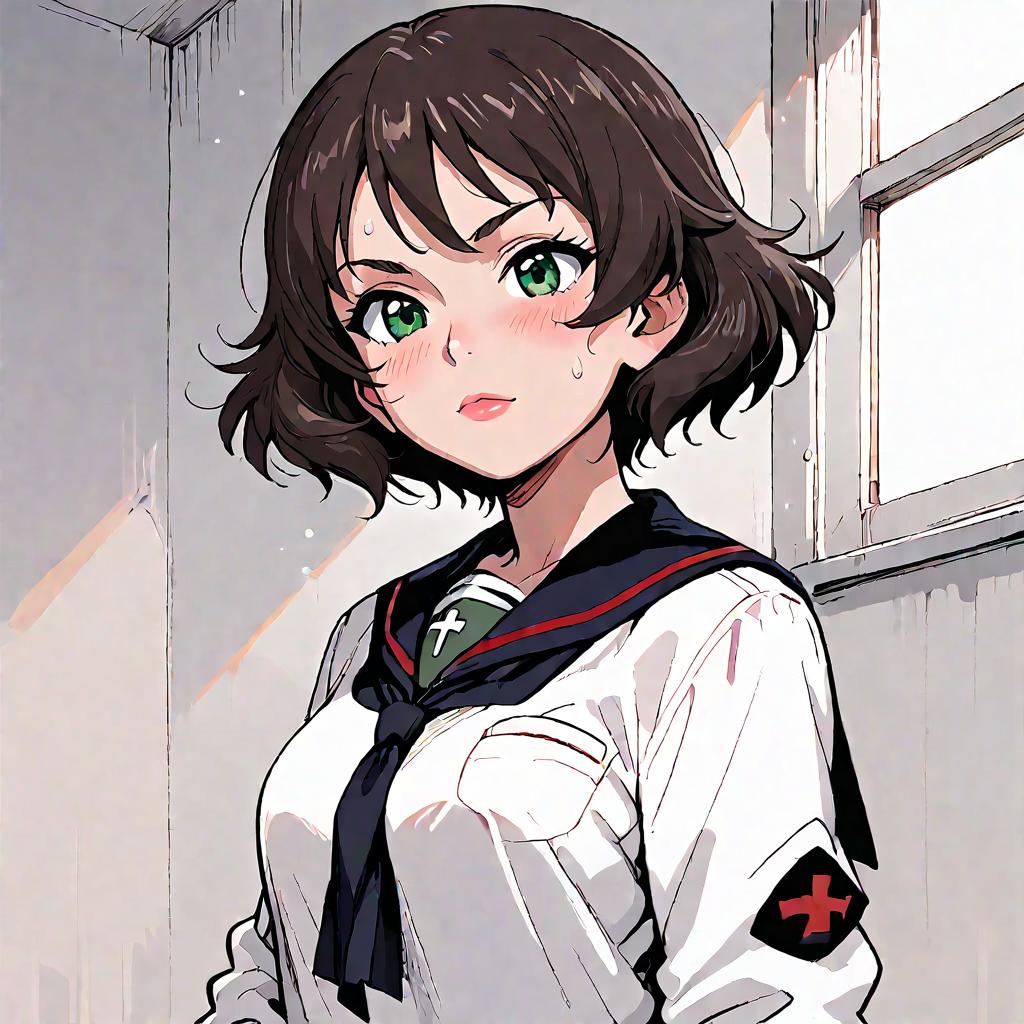 Score_9, score_8_up, score_7_up, score_6_up, source_anime1girl, kadotani anzu, girls und panzer, blush, ooarai school uniform, socks, loafers, small breastsstanding