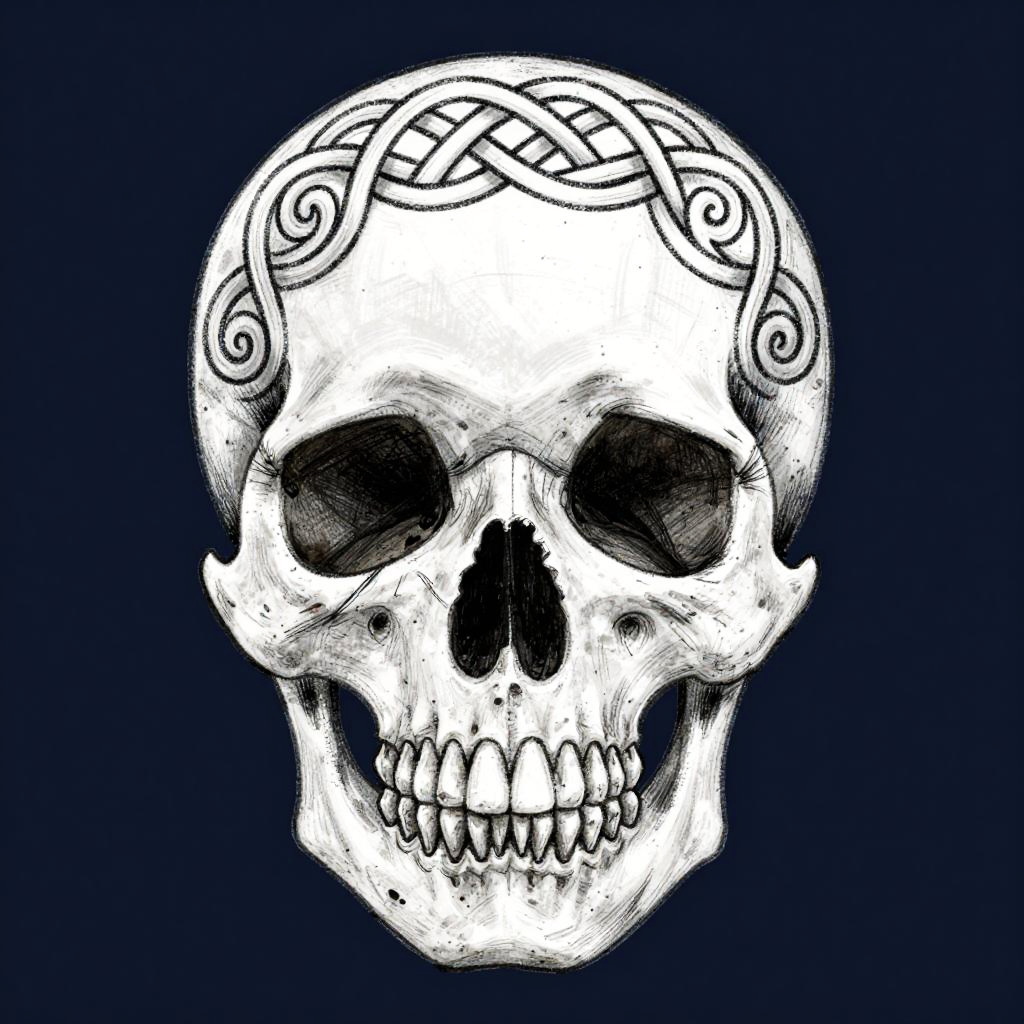 Celtic Knot Skull Sketch on Blue