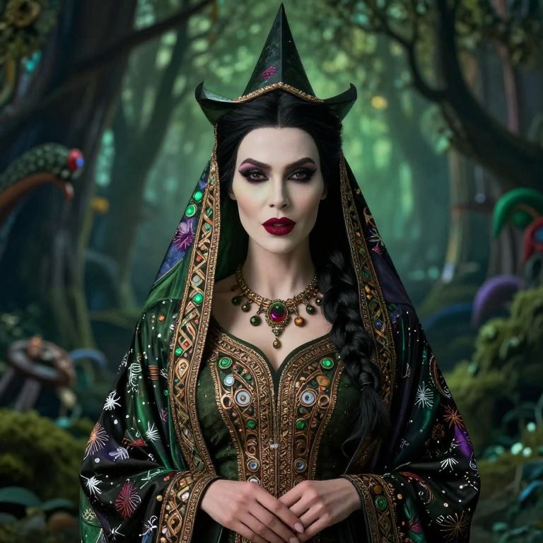 The Wicked Witch Of The West Meet Aisha, whose captivating portrait showcases the intricate patterns of traditional attire, celebrating the regions artistic heritage.,