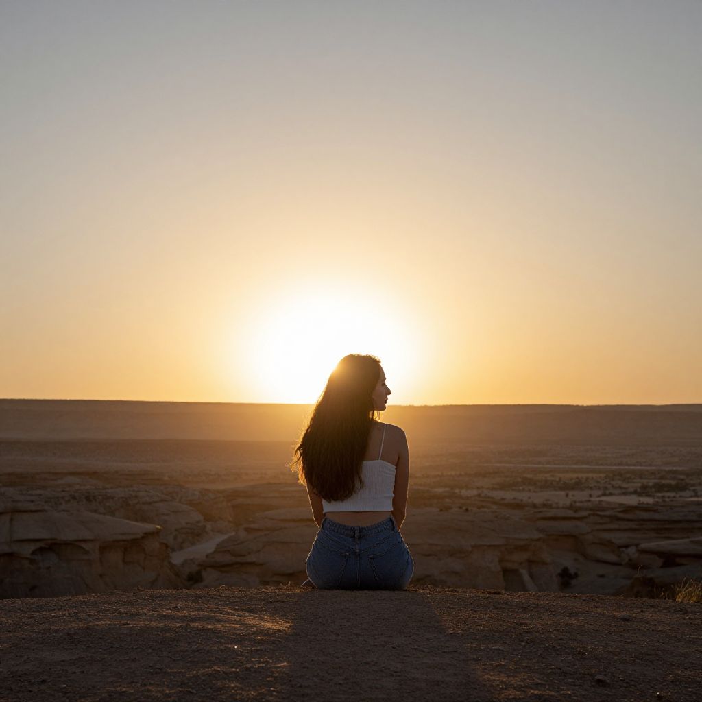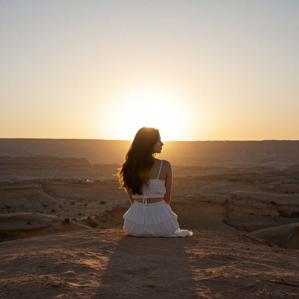 Woman Embracing Desert Sunset Serenity